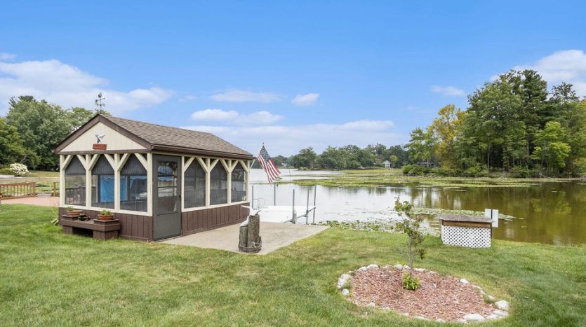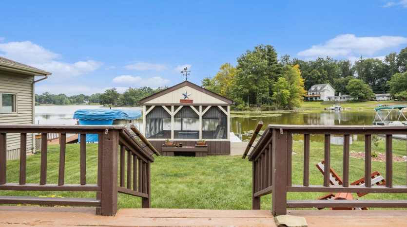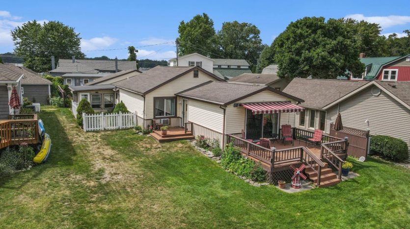 LAKE HOUSE on 65 Acre All Sports PRIVATE ACKLEY Lake. 3 Bed, 1 Bath home. This lakeside escape is nestled on a private lot with panoramic sunrise views. Very clean and well kept, the 1432 sq. ft. home features a functional layout, perfect for weekend getaways or year-round living. A 3 season room greets you and has a separate fenced in area for pets. A screened LAKESIDE GAZEBO with electric is perfect for outdoor dining or quiet evenings surrounded by nature. The retractable awning on the deck provides shade on those hot summer days. Enjoy the beautifully landscaped yard equipped with an underground sprinkler system. The whole house generator ensures peace of mind during every season. Recent updates include new furnace & hot water heater in 2021 & new sewer line in 2025. Tucked away for privacy on a PRIVATE LAKE with overflow parking available just a few steps from the home.
